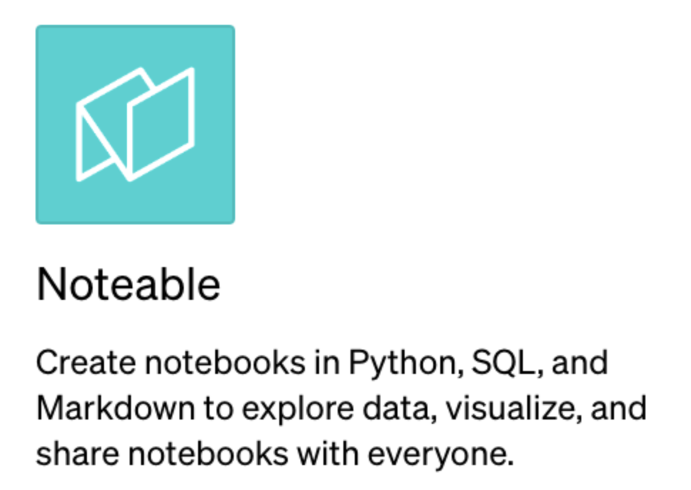 Next one is the most important one can do all of them at once, Notable. If you are curious about Data Science applications with ChatGPT and don’t know of Noteable, I highly recommend you research it. It is like a ChatGPT Advanced Data Analysis but at higher levels.