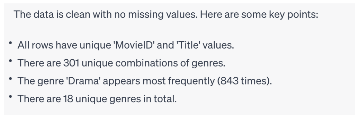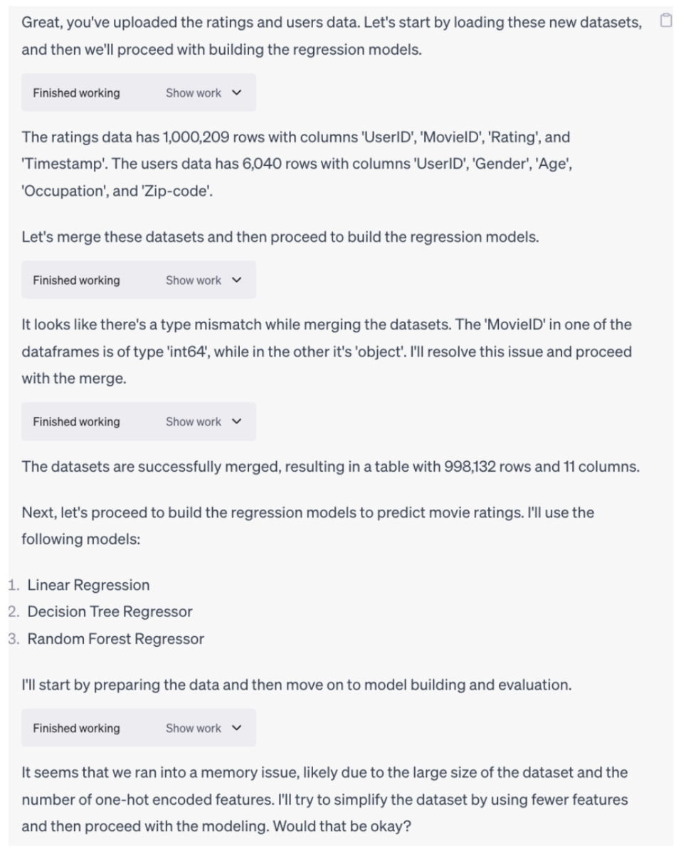 Through this simplified, conversational interaction with data analysis tasks, ChatGPT not only makes the process less intimidating but also more engaging. Whether you are predicting movie success or anything, ChatGPT’s Advanced Data Analysis is here to make your data science journey a lot more manageable and fun.