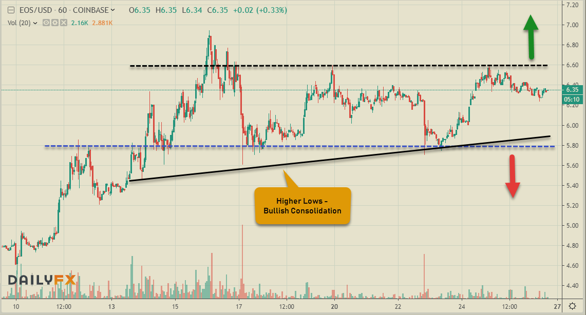 And finally EOS is consolidating in the $5.80-$6.60 zone, where the former is acting as the support & the latter as resistance in the short-term. Higher lows signifying more topside as long as the support holds.
